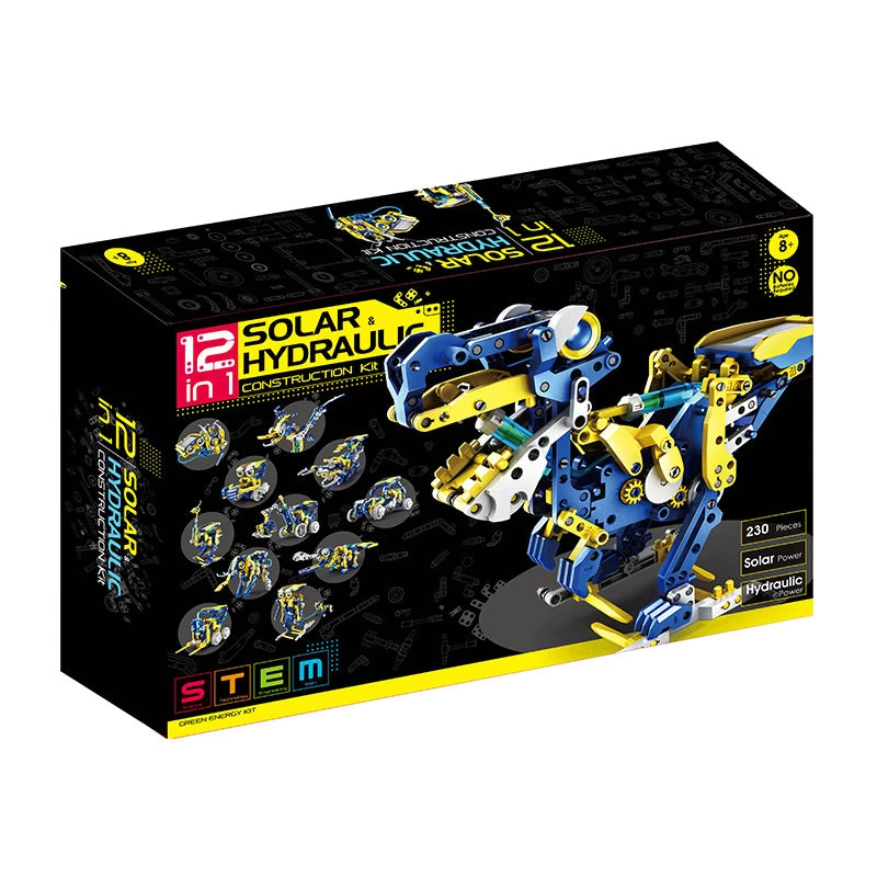 This solar and hydraulic powered robot can be transformed into 12 different models (monkey, elephant, forklift, crocodile, master & dog, rover, pterosaurs, ostrich, excavator, T-Rez, scorpion, buggy plus anything else your child can imagine!) By combining both hydraulic and solar power, these robots can move easily and provide some great fun interactive play. The 12 in 1 Solar Hydraulic Powered Robot is designed to teach children the benefits of alternative energy all while having fun along the way. This product is powered by the sun and water which means no batteries are needed. The robot can move in direct sunlight and allows children to play with it outdoors, encouraging them to explore the world.