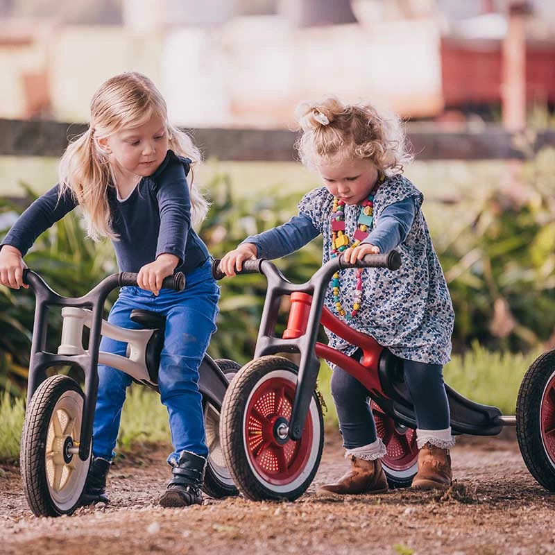 Interestingly, its frame is made from post-consumer recycled carpet and recycled bottles and incorporates Wishbone’s patented RotafixTM system for easy adjustability of the seat. Developed by Wishbone for this Recycled Edition, RotafixTM combines three-way seat and frame adjustability with a single fixing to precision-fit your Wishbone Bike to your child. Quick & easy, RotafixTM lets you re-size your bike in seconds, taking the seat from 25cm to 50cm high — very handy for sibling sharing!