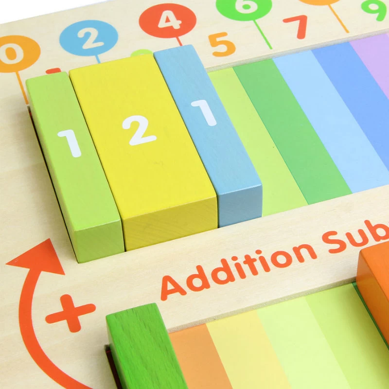 This bright and colourful activity board from Masterkidz makes learning mathematics easy and fun! By moving the blocks either onto the top section or removing them you can quickly demonstrate the basics of adding and subtracting. The result is simply shown on the top bar of the panel. This is a great teaching toy which easily holds children’s attention and makes mathematics learning fun.