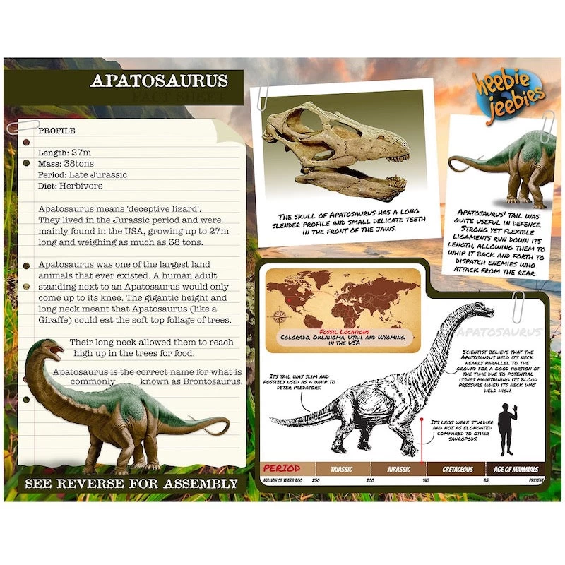 Create your own dinosaur out of wood. Apatosaurus means ‘deceptive lizard’ and they were one of the largest land animals that ever existed, weighing up to 38 tonnes. A human adult standing next to an Apatosaurus would only come up to its knee!