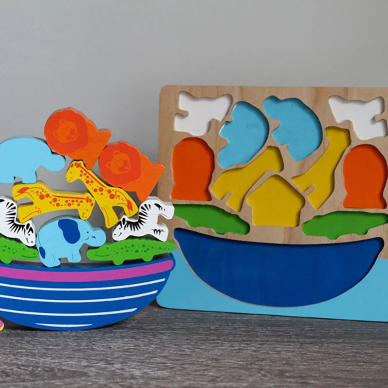The Ark Chunky puzzles is a fun way for small children to improve their fine motor skills. This puzzle from Kiddie Connect features 5 sets of animals plus the 2 piece ark which fit neatly into a wooden tray.