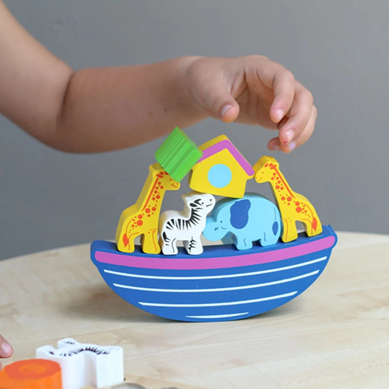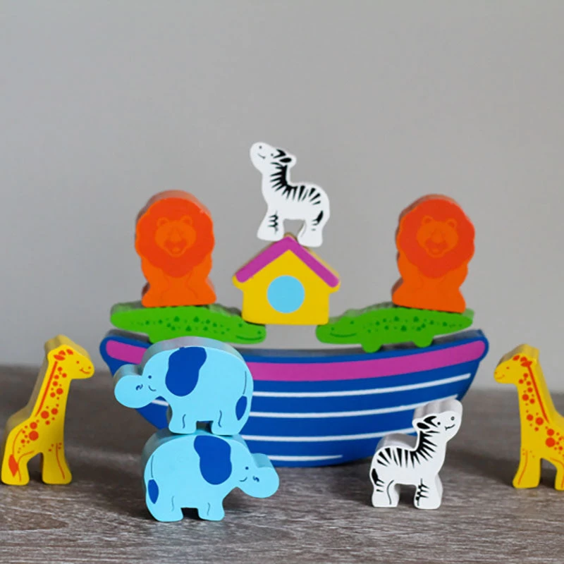 This simple toy can be played with in many different ways. It offers an opportunity for children to learn to identify and name the different animals, learn & match colours and also to stack & balance them as well.