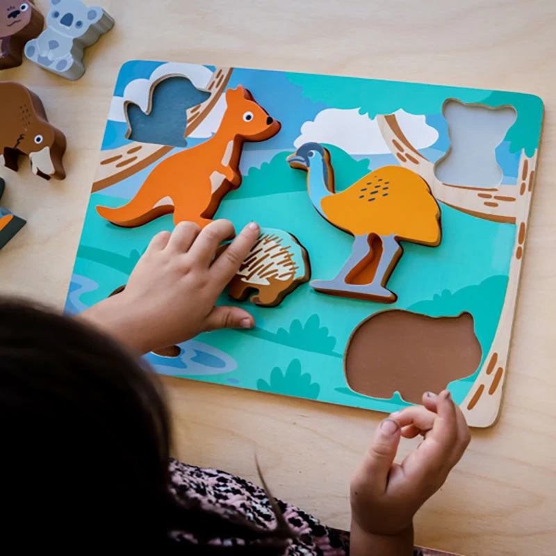 The Australian Animal Puzzle from Kiddie Connect is a educational puzzle that develops your child’s skills in stacking, sorting, counting and animal recognition.