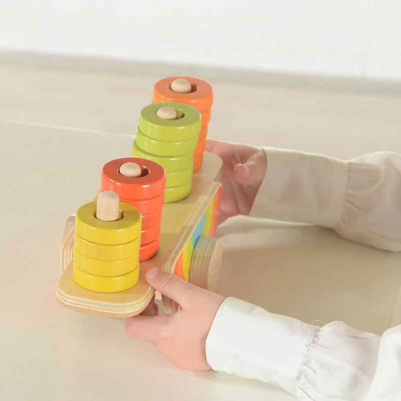 Can you balance the rainbow? With twenty rings in four different colours to place on the wobbly rainbow, it will take problem solving skills to make the rainbow level.