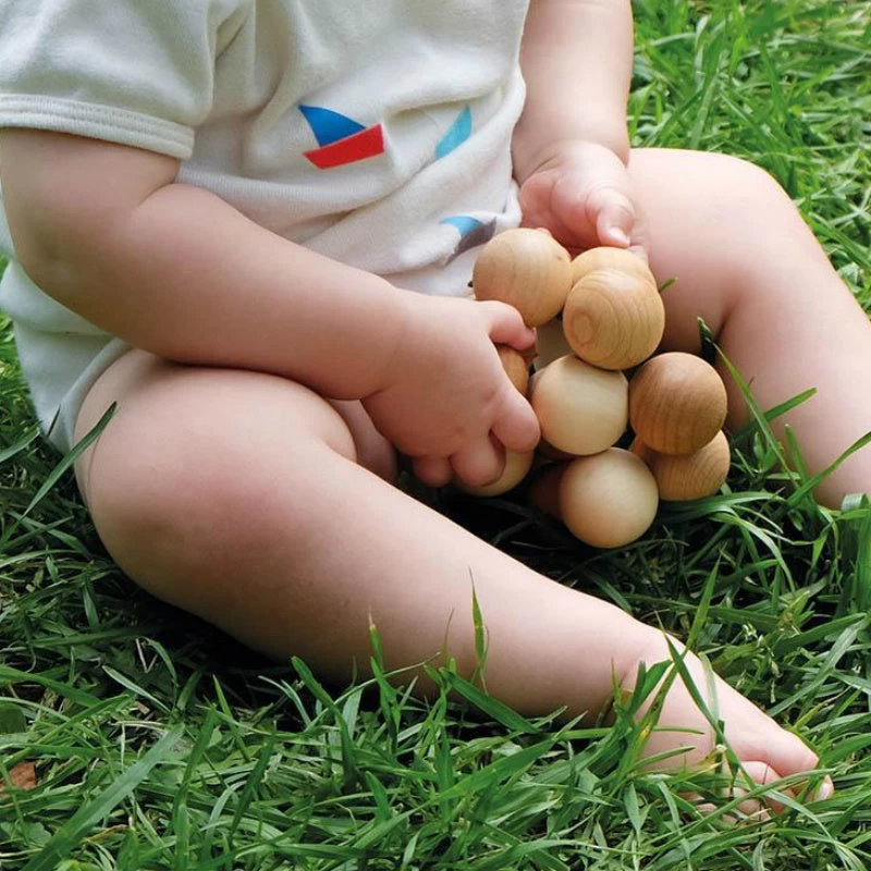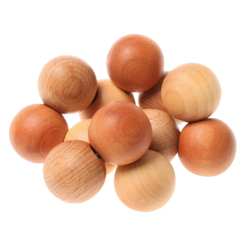 These wooden balls from Grimm’s have a pleasant tactile feel to them. The balls are joined by a strong elasticized string. Baby’s enjoy the feel of the wooden beads as they roll across each other. This item can be used with children who fidget or have attention challenges. Adults also enjoy using them as a de-stressor.