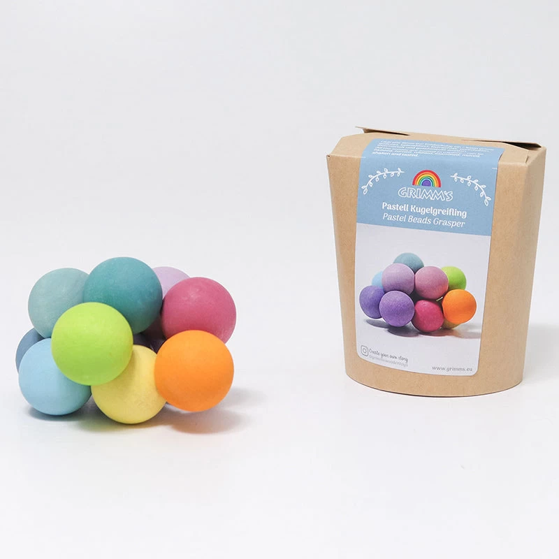 These pastel coloured wooden balls from Grimm’s have a pleasant tactile feel to them. The balls are joined by a strong elasticized string. Baby’s enjoy the feel of the wooden beads as they roll across each other. This item can be used with children who fidget or have attention challenges. Adults also enjoy using them as a de-stressor.