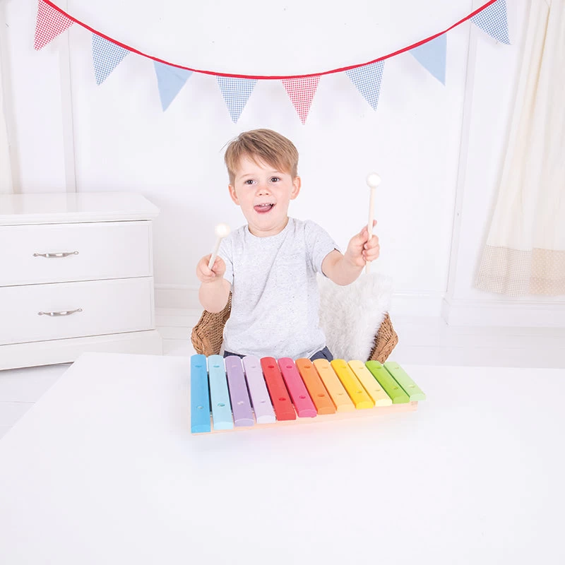 All the colours of the rainbow, we love the beautiful colour range on this xylophone! Help body and mind work together as your child learns to strike the instrument and produce different sounds. Develop hand eye coordination, promote creativity and stimulate neural pathways with this musical masterpiece.Â