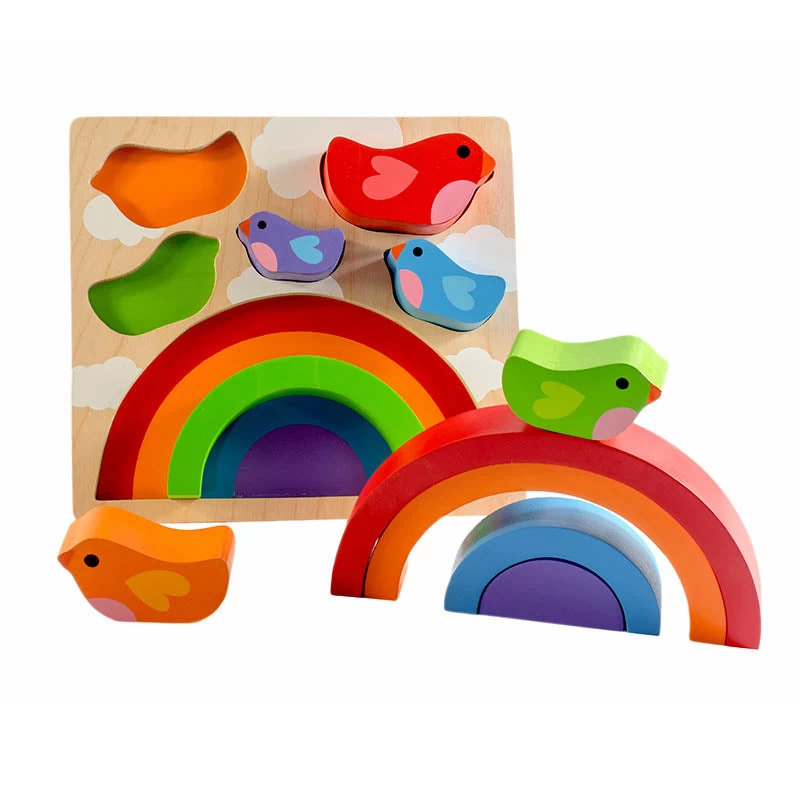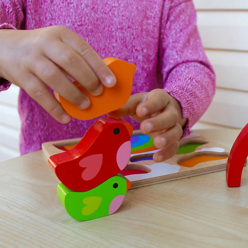 This chunky puzzle from Kiddie Connect features ten solid wooden pieces that are the perfect size for small hands. The puzzle enables children to develop their problem-solving skills, numerical understanding, logical thinking, shape and colour recognition and seriation (a fundamental sorting skill which relates to recognition of relative size and patterns).