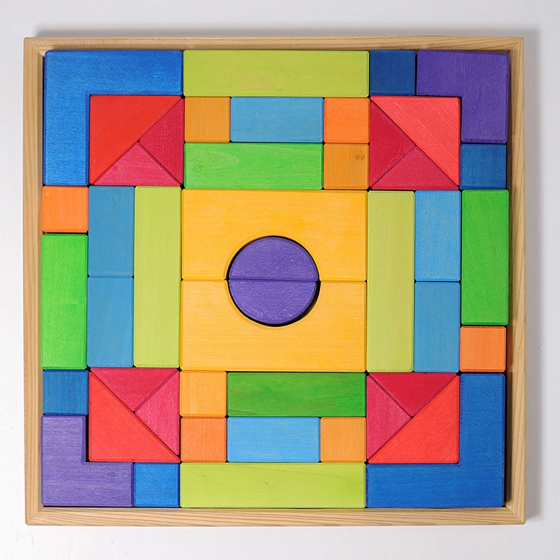 We love this building set from Grimm’s and you can see why — not only are they beautiful, but they are also functional and are ideal for open ended play. Due to the non-varnished surface, young children are able to stack the blocks easily creating endless possibilities. The set of 46 blocks come in a wooden frame for easy storage. Build walls, fences, houses, towers and castles… whatever their imagination desires.