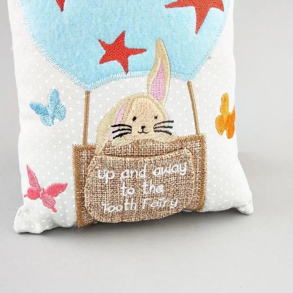 This Tooth Fairy Cushion by Floss & Rock features a bunny in a hot air balloon and a pocket for a tooth – or more importantly money. The cushion is 12cm x 20cm and has a 13cm long string loop. The loop gives you the option to hang the cushion from a door handle if you don’t want to put it on the bedside table.Â
