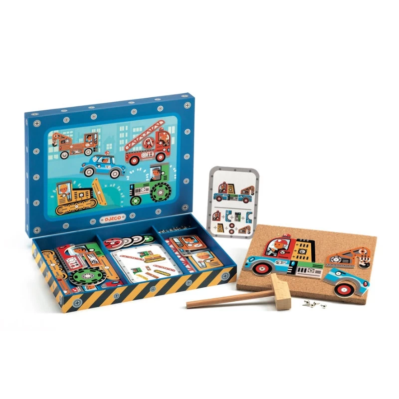 Prepare to get totally revved-up over this tap tap construction set from Djeco. In Vehicles Tap Tap little car and machinery aficionados will love to fashion their very own vehicles by following the designs displayed on the cards, or by making their own unique combinations. All they need to do is grab the vehicle components and tap-tap it into place on the board using the supplied tacks.