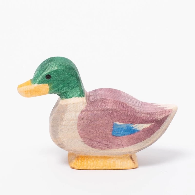 The Ostheimer duck has a strong yellow bill and lots of different coloured feathers. The duck is 4.5cm tall and 6cm long with soft sanded edges and an emerald green head.
