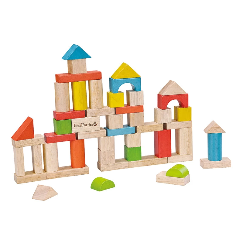 These quality crafted blocks from EverEarth make a fun educational tool for your child’s development. Fifty quality, smooth building blocks in a variety of sizes and colours can boost your child’s creativity and dexterity as they learn to build from their imagination.The set includes 50 pieces in a handy storage tub with a plastic shape-sorter lid and handle to keep everything neat and tidy at the end of playtime.Â