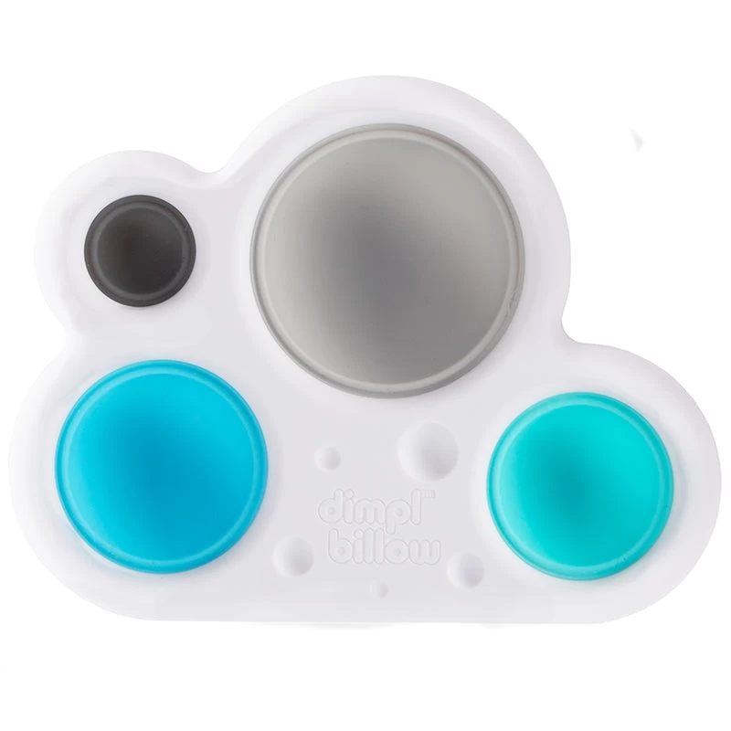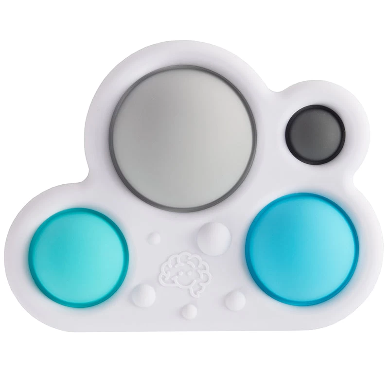 Little fingers can’t resist these beautiful buttons! This set includes 2 sensory toys featuring silicone bubbles. The first looks like a cloud with four dimpl bubbles built into the frame.