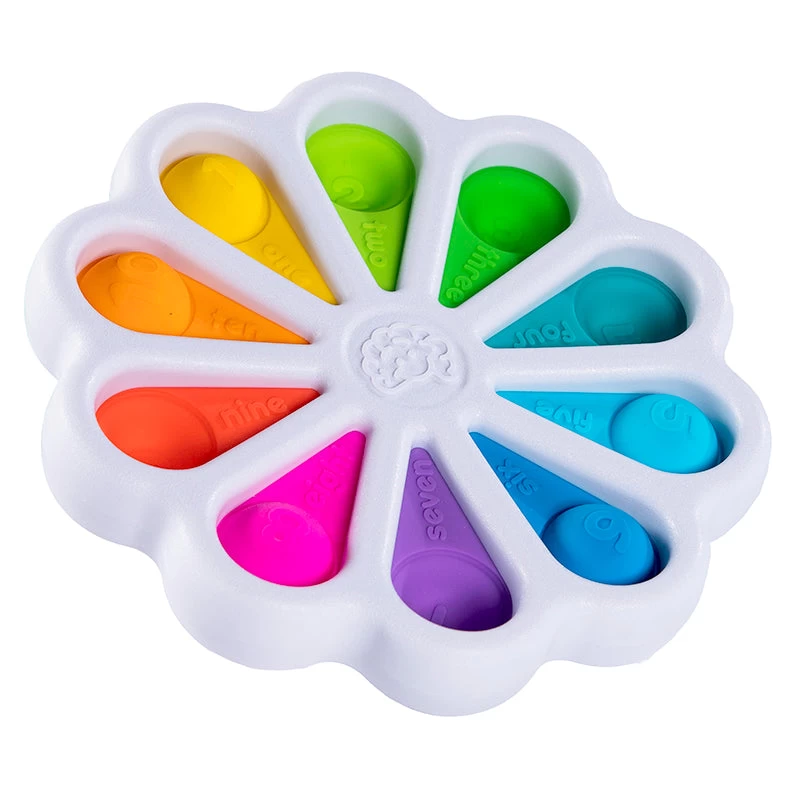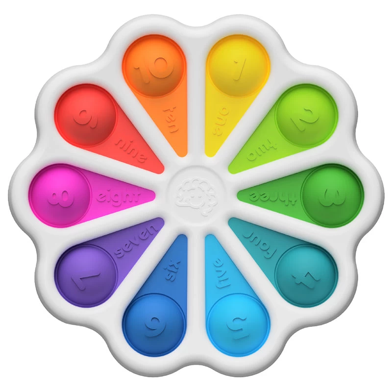 Little fingers can’t resist these beautiful buttons! Learn to count from 1 to 10 with this fun and captivating toy from Fat Brain Toys. Built safely into a sturdy ABS plastic frame are 10 vibrant coloured silicone bubbles. On one side of the toy each silicone button has a number from 1-10 embossed and it’s matching word in English. The other side you will find the words written in Spanish, plus dots to feel and count.