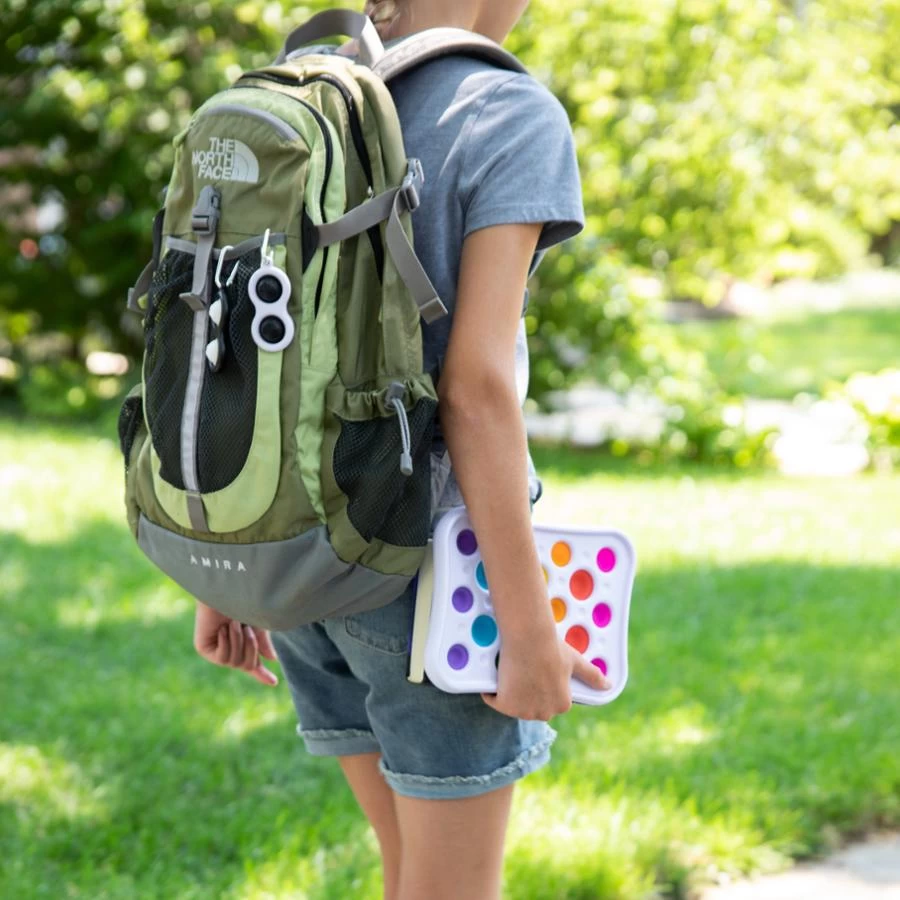 This rainbow pop it board is designed for never-ending popping fun! The durable, high quality plastic frame contains 18 silicone dimpl bubbles in two different sizes. It is perfect for all ages and a great size for travel and easy storage.