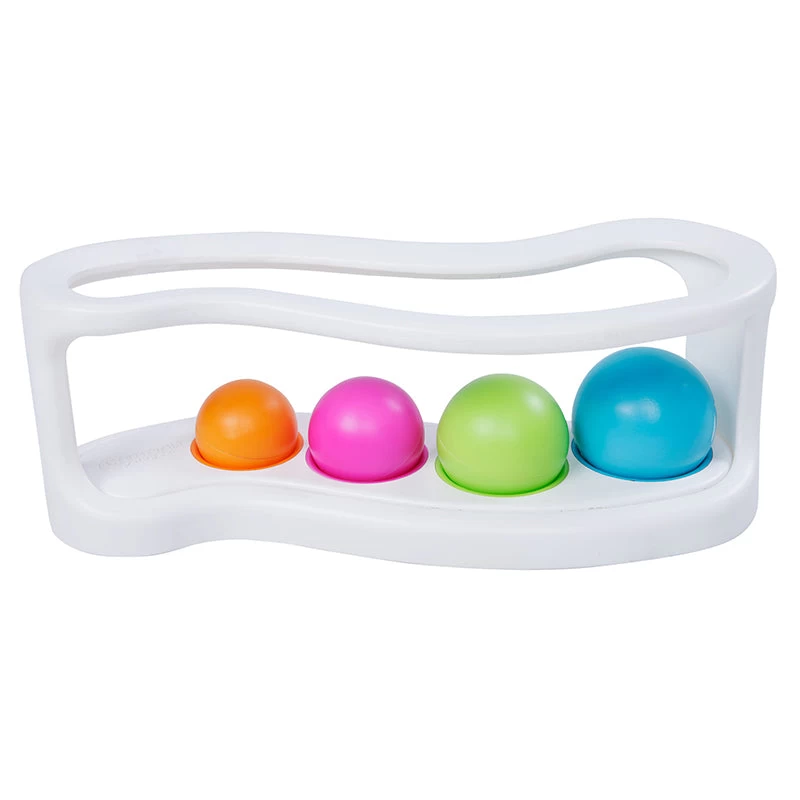 The Roll Again Sorter track gradually widens and as each ball rolls down the track it will fall down into its designated spot.