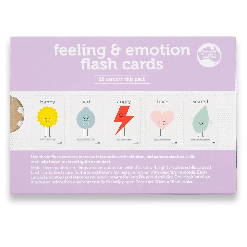 Learning about different Feelings & Emotions can be fun with the easy to read and brightly coloured illustrated flash cards from Two Little Ducklings. Each card measures 10cm x 15cm.