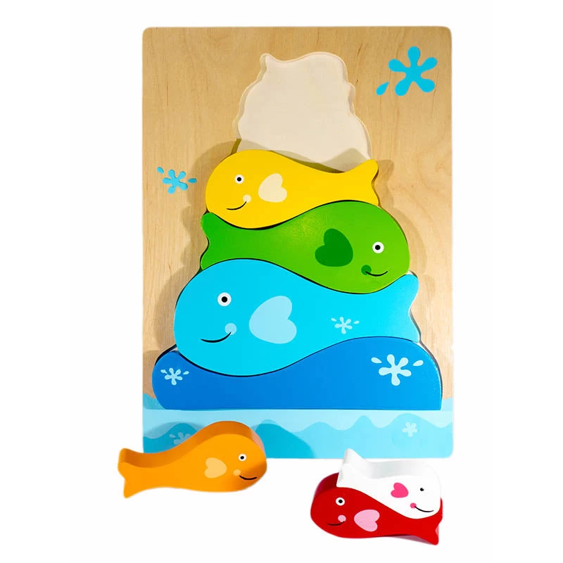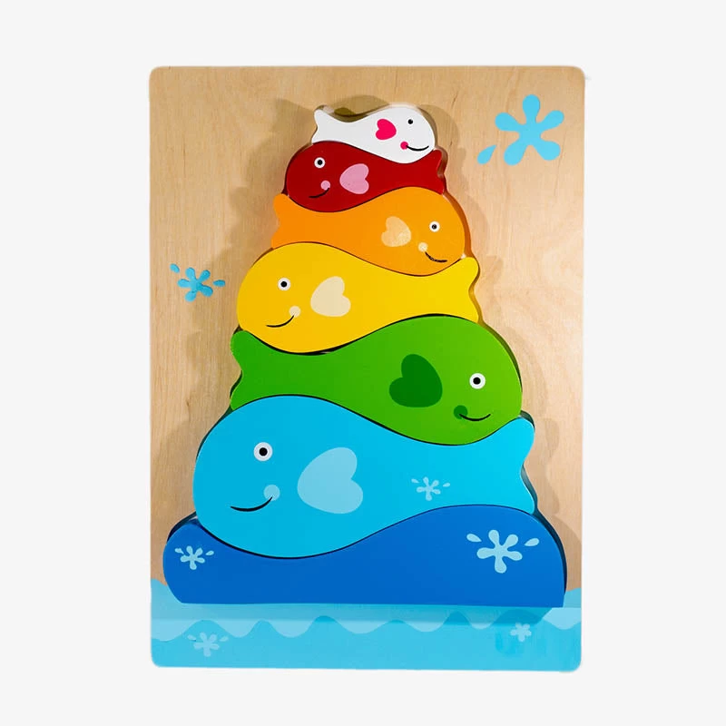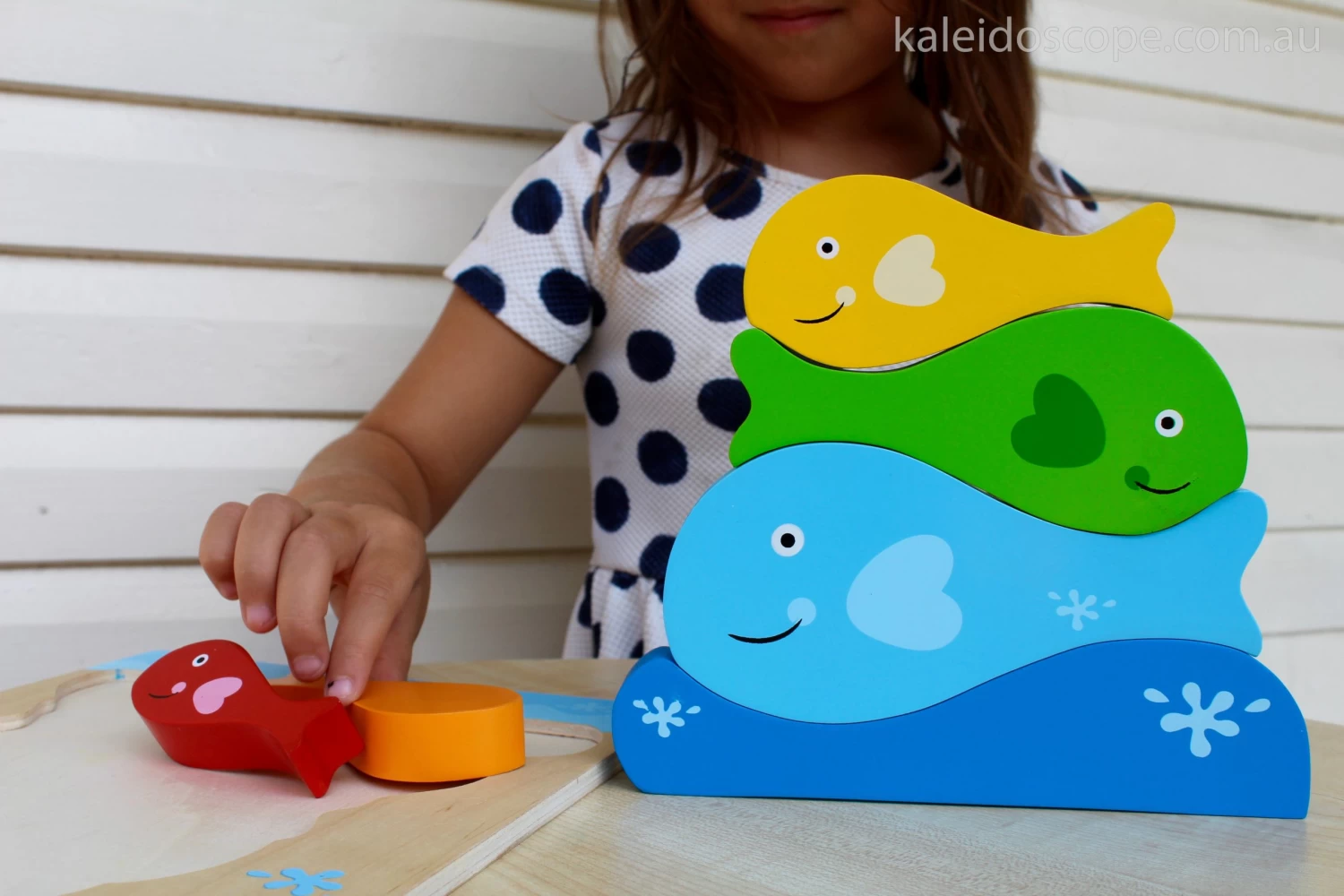 This chunky puzzle from Kiddie Connect features seven solid wooden pieces that are the perfect size for small hands. These brightly coloured fish need to be stacked in order of their size.