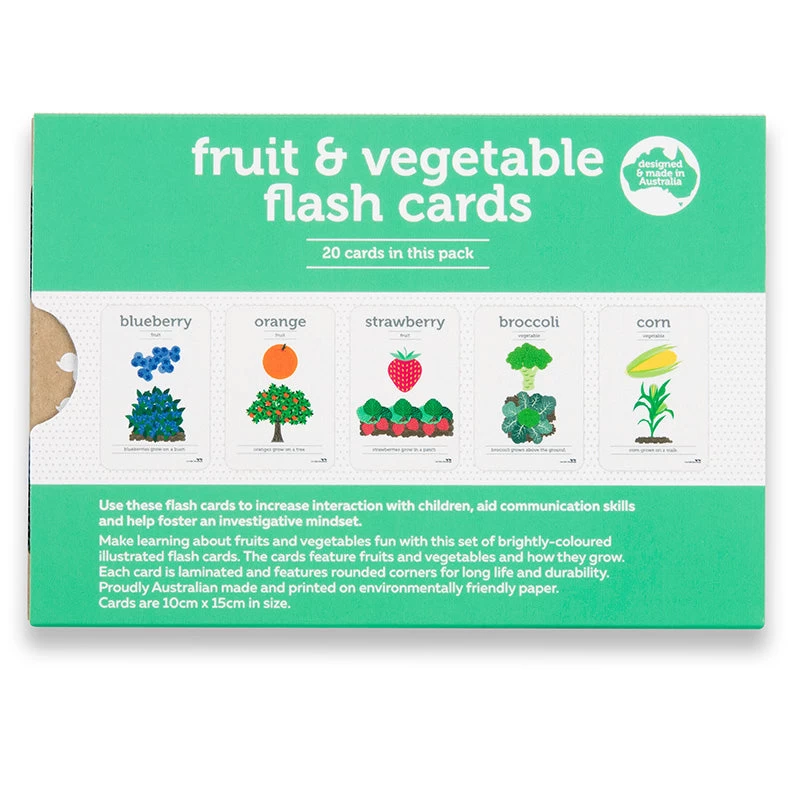Learning about different Fruit & Vegetables can be fun with the easy to read and brightly coloured illustrated flash cards from Two Little Ducklings. Each card measures 10cm x 15cm.