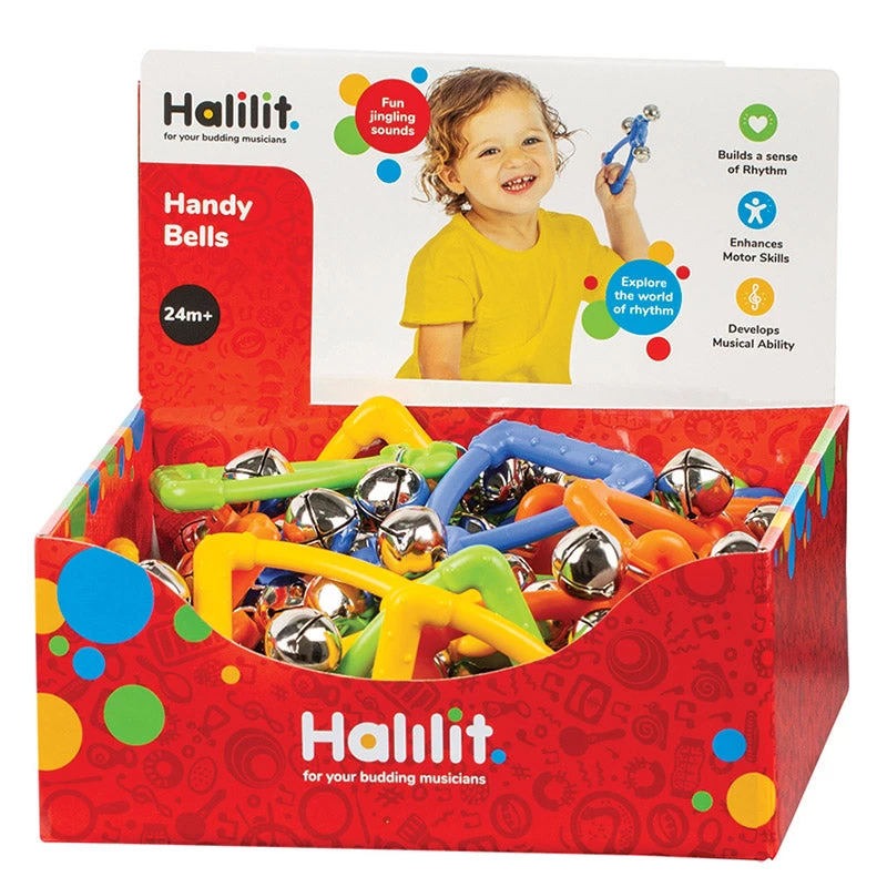 The Halilit Handy Bells are the perfect introductory musical instrument for your little one. With a gentle jingling sound and easy to grasp handle, they will surely delight. The handy bells help develop musical ability, build a sense of rhythm and enhances fine motor skills. They are a beautiful design, durable and safe.
