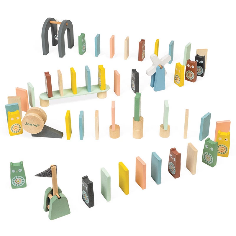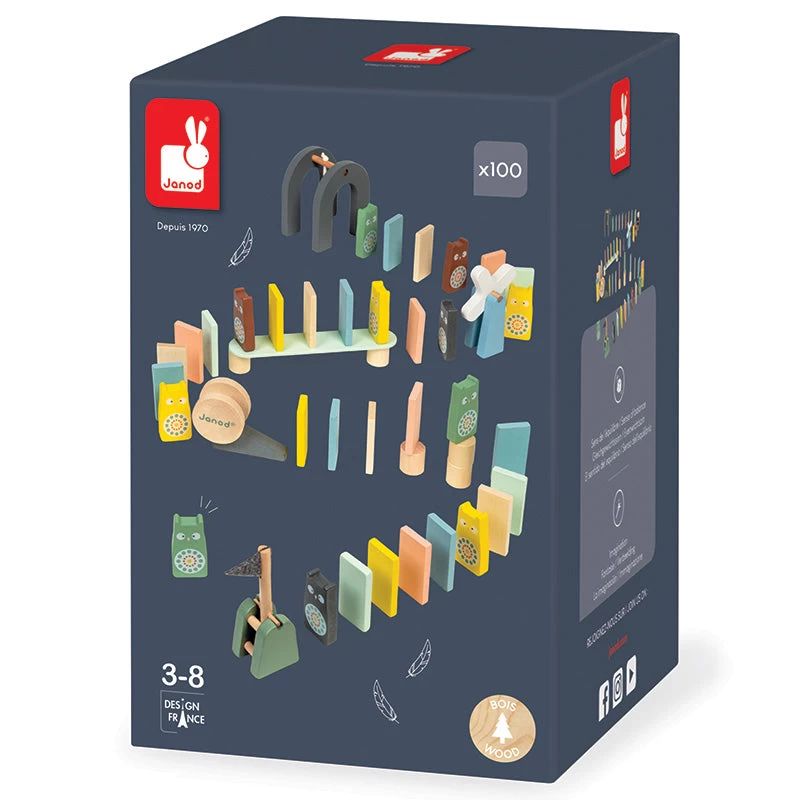 These Cocoon dominoes from Janod will provide hours of fun. There are 100 pieces included in the pack which will allow you to build a fabulous domino course full of obstacles (blocks, bridge, windmill, bell slope, flag and reel). The wooden pieces are lightweight, tactile and smooth. Hours of fun!