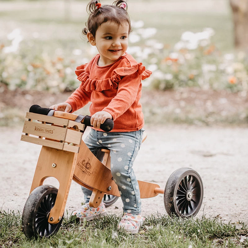 The Bamboo Tiny Tot PLUS is a larger size to the award winning Kinderfeets 2-in-1 balance bike and trike. This stylish design is crafted from lacquered bamboo wood.