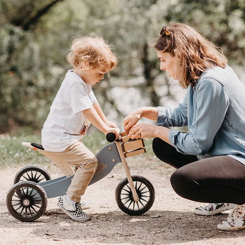 The Slate Blue Tiny Tot PLUS is a larger size to the award winning Kinderfeets 2-in-1 balance bike and trike. This stylish design is crafted from painted and lacquered birch wood.