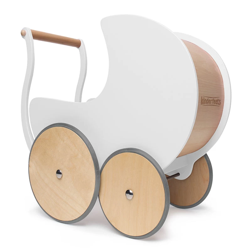 It’s made of birch wood, the sides are painted beautifully in soft white and it comes fully assembled out of the box. Little ones will have so much fun putting their dolls and toys inside and taking them for a stroll. Fits dolls and other cuddly friends up to 35cms.Â