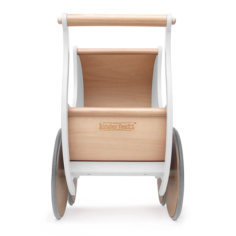 A fantastic toy from Kinderfeets that has two play functions. The Kinderfeets Pram is both a baby walker and a traditional doll’s pram. It’s the perfect way to get babies comfortable taking their first steps. As your little one perfects the trade of walking, you can easily remove the stabilising pegs, turning it from a walker into a pram.Â