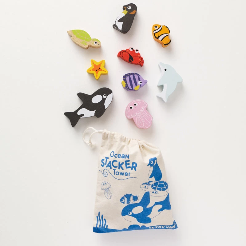 The Petilou Ocean Stacking Animals will take you on an underwater adventure. The cute stacking set contains 9 sea animals that can be balanced on top of each other, making it a quirky hand-eye coordination toy for toddlers.