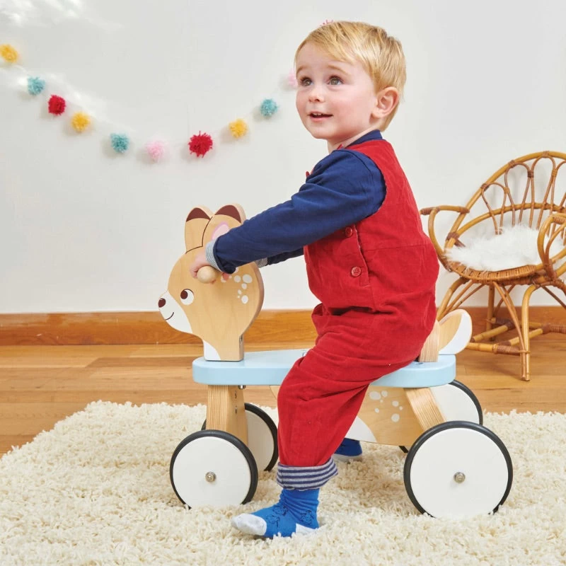 This little Le Toy Van Ride On Deer is possibly the most adorable thing we have ever seen. Apart from being the sweetest thing in the shop, this ride on has been made to last. Made of sturdy wood with large rubber coated wheels this little deer will please more than one generation of children. With easy-to-grip handles and a secret squirrel storage pocket under the seat, kids will love scootin’ around with all their treasures.