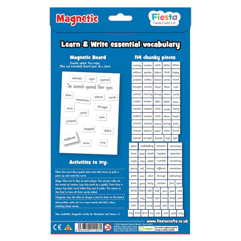 A fantastic way for children to learn in grades 3 and 4 how to spell and read words. It comes with a magnetic board and 114 widely-used words for this age group, all with magnetic backing. The double sided magnet board is also great for storage!