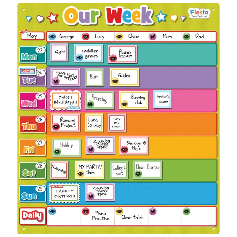 Family life can get so busy sometimes, so getting organised will go a long way! And what better than a magnetic week planner – it comes with 85 magnetic pieces and a whiteboard marker (easily wiped off) to help you display all events and activities in a simple and effective way. It can be easily customised to accommodate family member names, days of the week and activities. Dimensions: 35cm x 31cm.