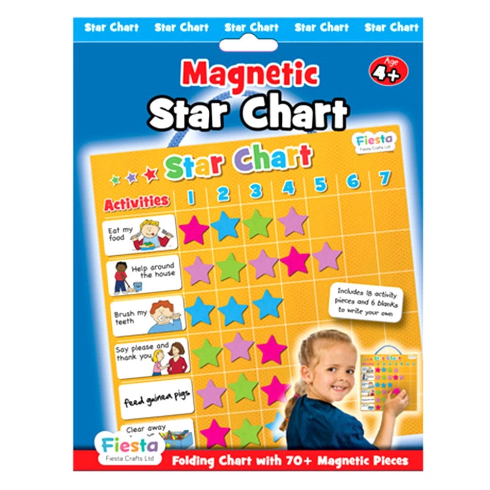 Star charts are an excellent way to encourage good behaviour in children. This Star Chart from Fiesta Crafts can be used for multiple activities. It includes 18 activity suggestions and 6 blank pieces to write your own. These are easy to use and wipe clean. You can store all the unused stars and activities inside the board for easy access. The boxes are numbered so stars can be earned over a week or any period of time. It can be hung up by the cord, or stood on a shelf. Dimensions are 36 x 18cm and there are 80 pieces in total.