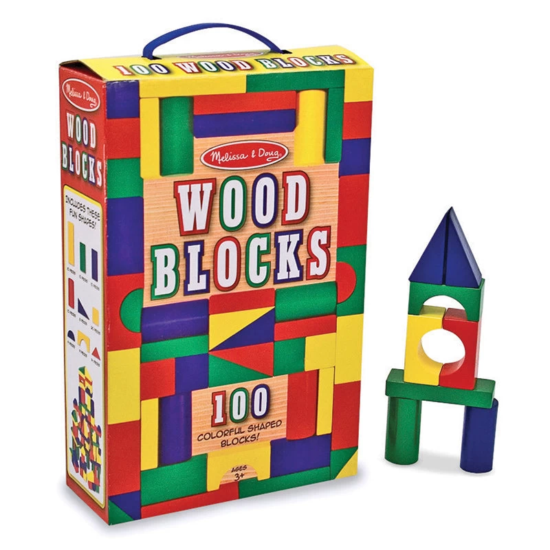 An essential component in every playroom, wooden blocks are a fantastically fun developmental toy with an infinite number of building possibilities. Melissa & Doug’s Wood Blocks set consists of 100 classic wooden blocks in four colours and nine shapes.