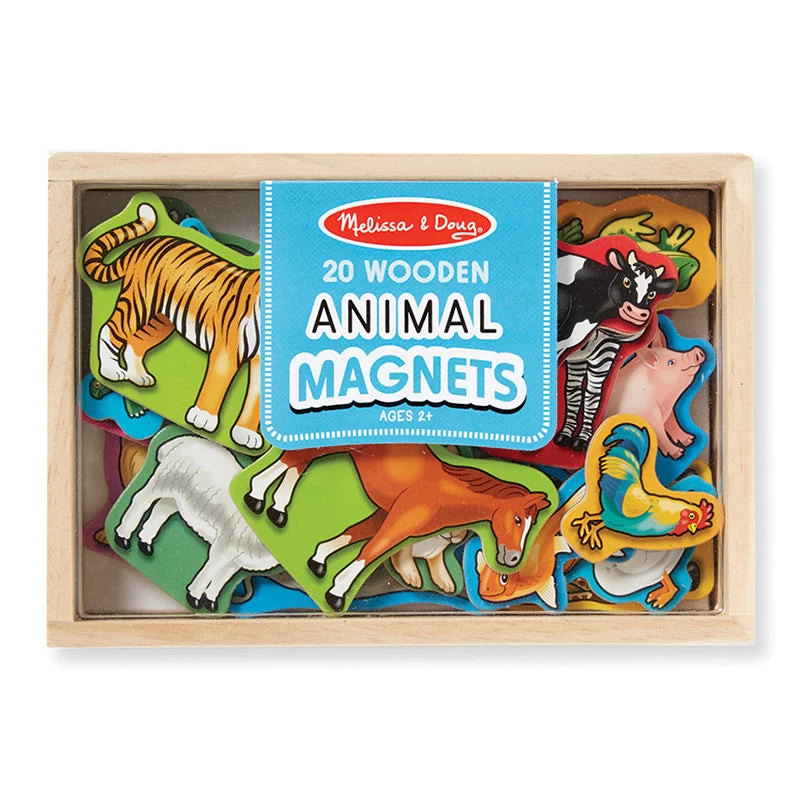 You will get totally stuck-on these gripping magnetic animals! This convenient wooden box is home to a menagerie of 20 wooden animal magnets that are just waiting to be turned loose and played with in a wild or domestic story. Or simply use them to liven up your kitchen fridge! Giraffe magnet height – 14cm.