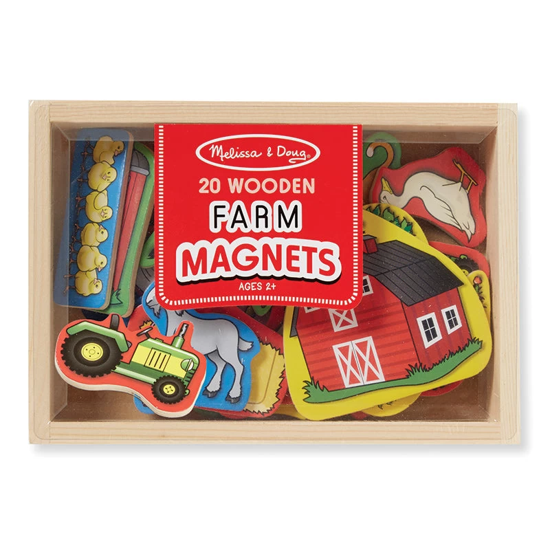 These 20 wooden magnets offer endless farm-themed creative play opportunities, all while improving hand-eye coordination and fine motor skills! Easy to position and reposition again and again on any magnetic surface. They come in a convenient wooden storage case keeping everything neatly stowed away after playtime. These colorful magnets with friendly graphics are great for matching, sorting, and storytelling.