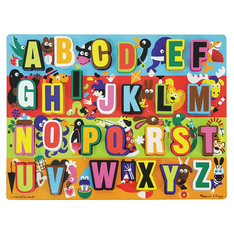 Melissa & Doug chunky puzzles are perfect for little fingers. Make learning their ABC’s fun with these 26 easy to grasp chunky letters. Each letter has a colourful image around it with a word starting with that letter. The graphics are bright with full colour letters behind each letter piece. The letter pieces can also be used as stand alone play pieces which also stand up.