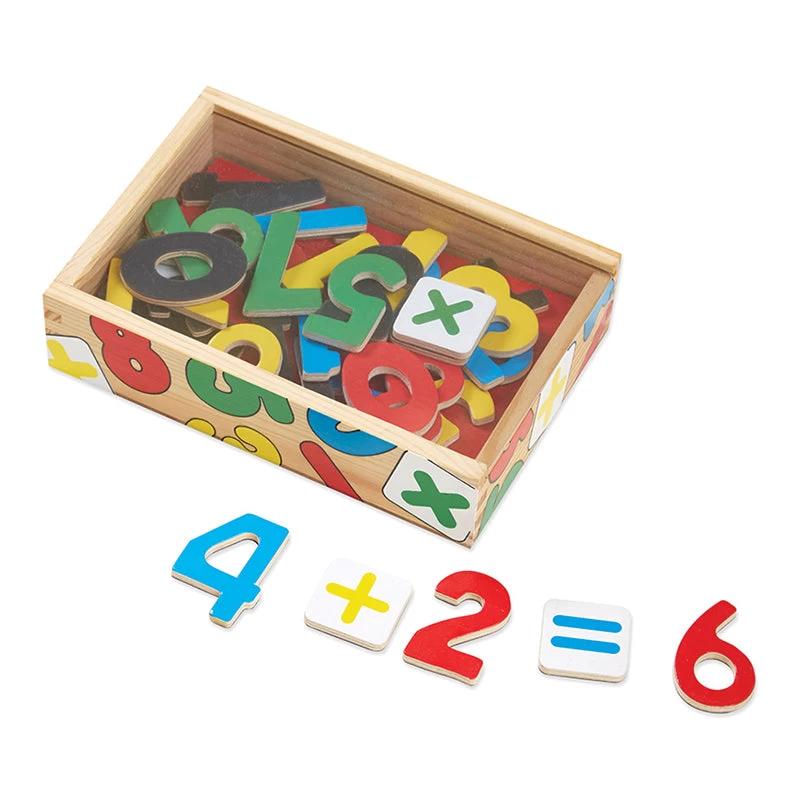These attractively-packaged 37 magnetic numbers from Melissa & Doug make a colourful jumble of learning possibilities in a handy wooden case. Ideal for simple addition and subtraction! The pieces can help children learn their numbers and solve basic math problems.