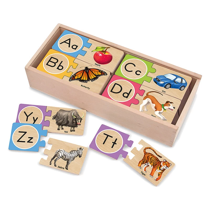The alphabet has met its match! This alphabet box from Melissa & Doug is filled with 26 two-piece puzzles, pairing upper and lower case letters with illustrations to match. Each wooden puzzle piece fits only with its correct match, so children can work by themselves to learn letters in a way that’s fun and frustration-free.