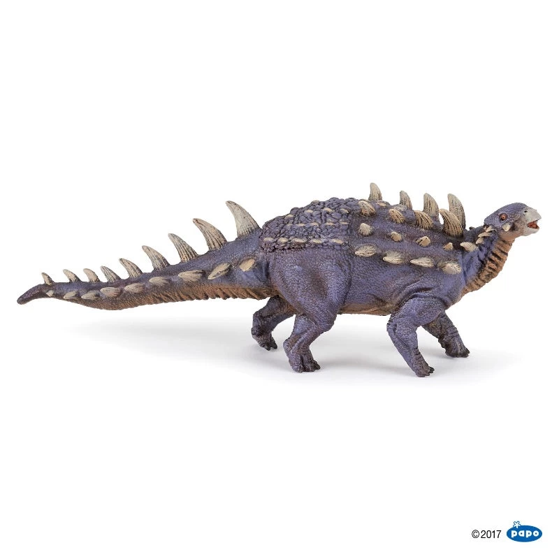 The Polacanthus is a plant-eating dinosaur from the early Cretaceous period. The name is derived from Ancient Greek and means many thorns or prickles. This replica from Papo is highly detailed and is 18cm long and 5.5cm tall. The dinosaur is medium purple with a range of different sized spikes protruding from its body.