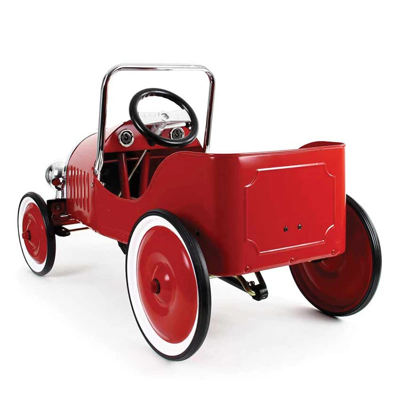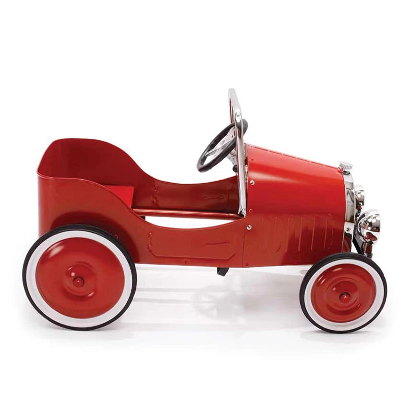 Inspired by the 30’s in a gorgeous retro style, this red pedal car from Baghera has silver rims, a chrome grill, two large headlights and a windshield handle, perfectly equipped for any adventure.