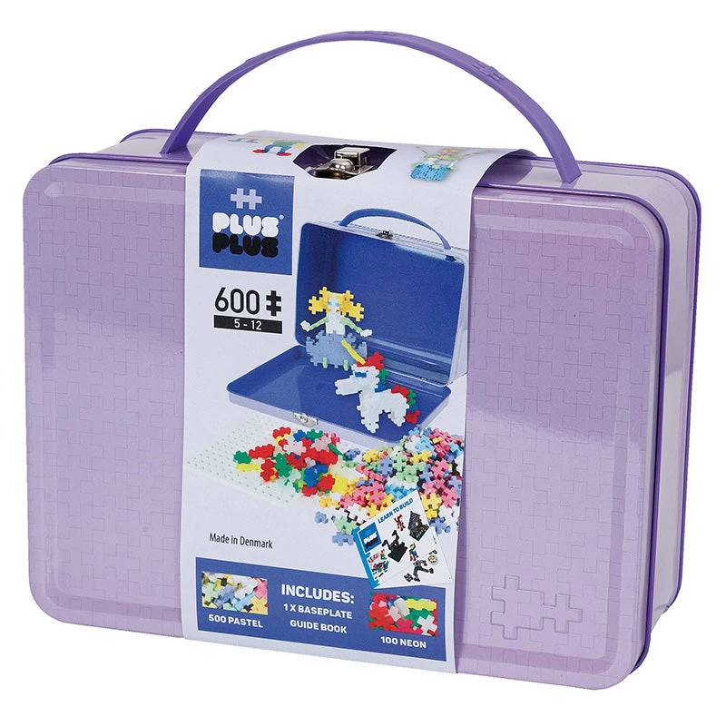The Plus-Plus pastel metal suitcase contains 500 pastel pieces, 100 neon pieces, 1 base plate and an instruction guide. Let your imagination run wild and the creations begin!