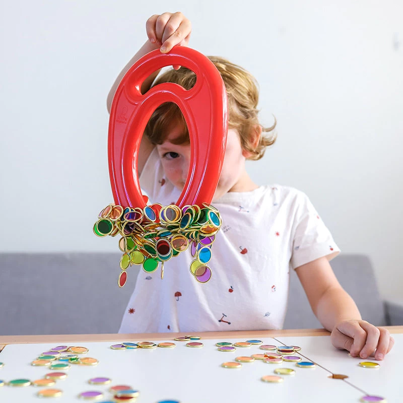You can hide the chips in coloured rice and let your child explore with a magnetic wand.