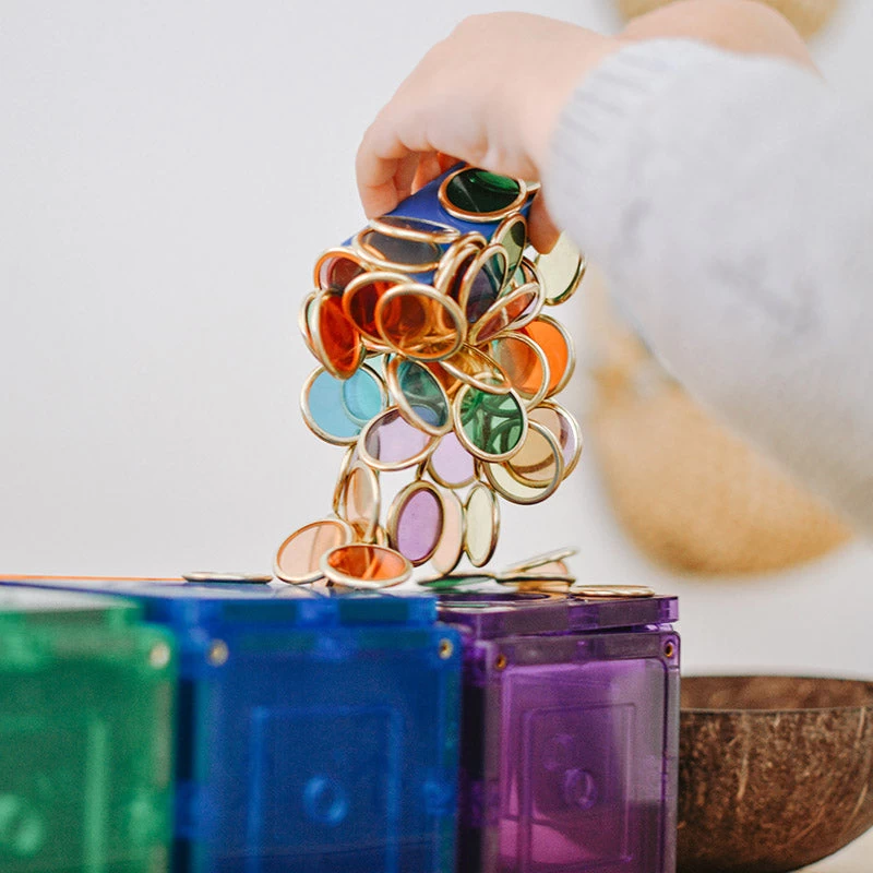 Each chip has a steel ring around the edge allowing it to be readily attracted to magnets. They are rust resistant and perfect for sensory water play (however they should be dried after use and not be stored wet or left in water for long periods of time).