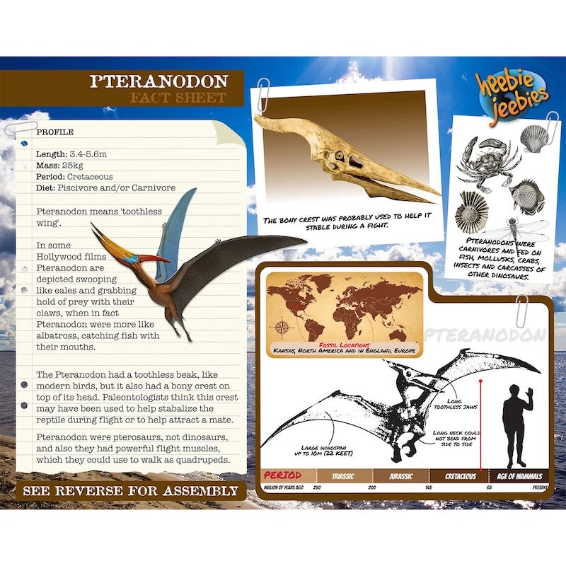 This Pteranodon wood kit takes 30 minutes to complete and does not require glue. Instructions and sandpaper are included and the model can be painted afterwards however bold imaginations see fit! The dinosaur is 52cm wide.