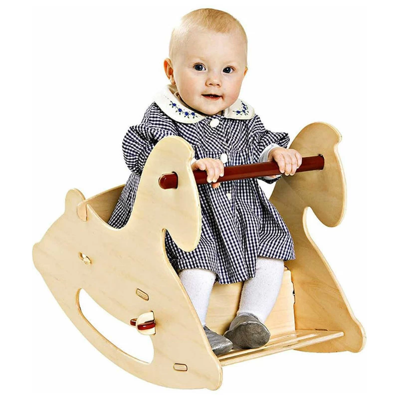 Little ones will love this natural Rocking Horse from Moover. A classic horse themed rocker, just like the ones we had when we were little! It is a fun and instructive rocking horse which has been designed specifically for small children. The design combines the classic rocking horse with a modern design and introduces the child to rocking back & forth in a safe and fun way.