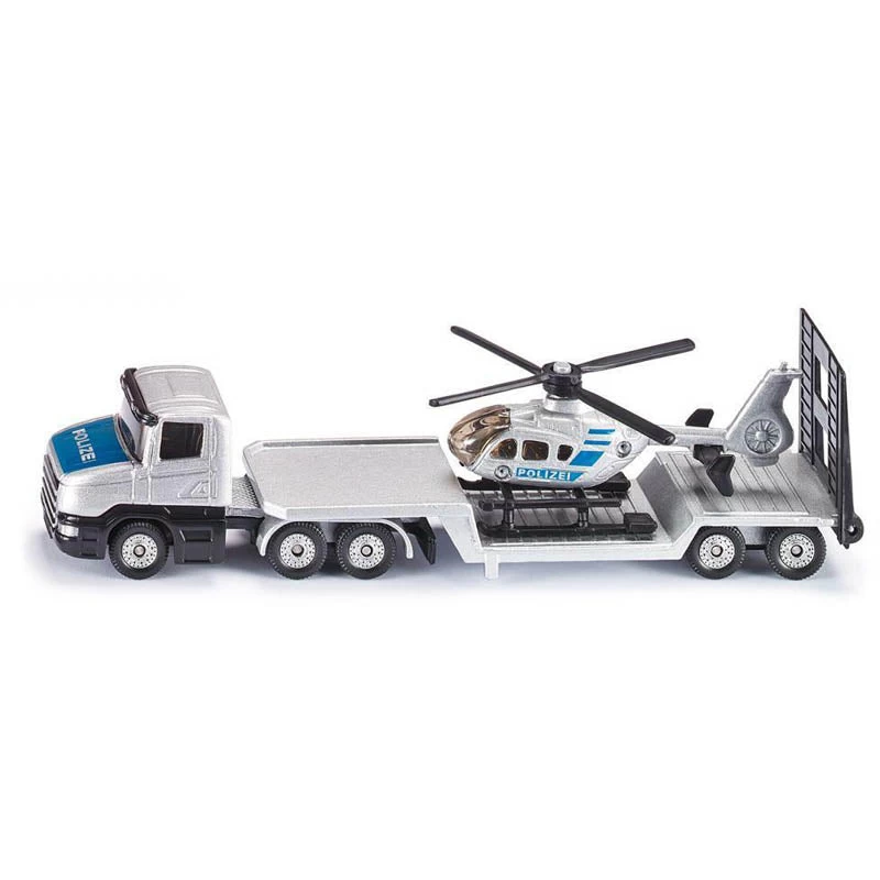 1:87 scale diecast model of a Scania Low Loader with Police Chopper. Features smooth rotating wheels, and propeller on the helicopter. Made mostly from diecast metal with some plastic parts, tough and durable. A nice addition to any car lover’s toy collection!Â