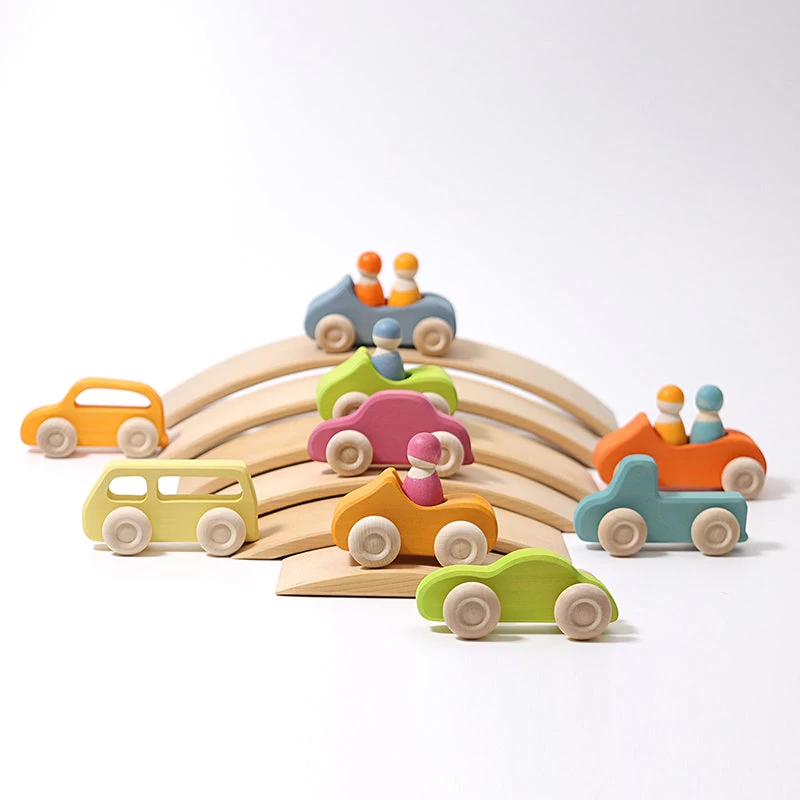 Take a Rainbow friend on a journey with this simple and off road wooden convertible car. This car from Grimm’s is perfect for imaginative play, the possibilities are endless. They are made of lime wood and have a non-toxic water based colour stain.